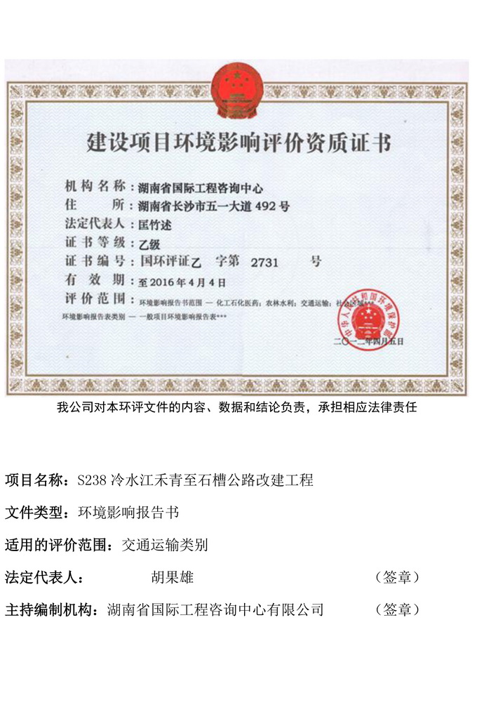 S238冷水江禾青至石槽公路改建工程環(huán)評公示(簡本)