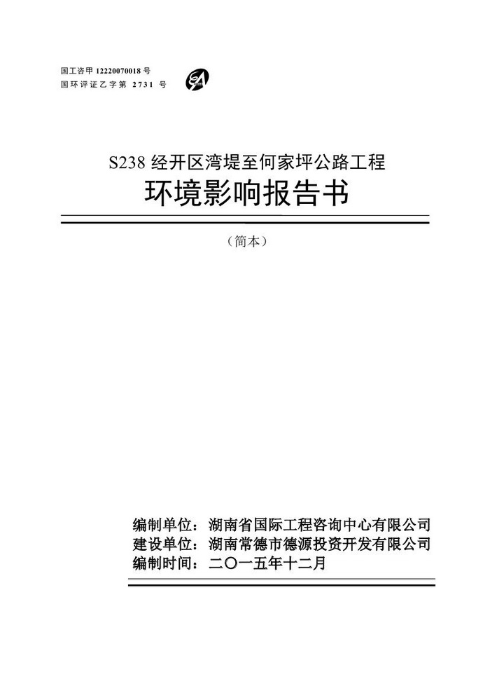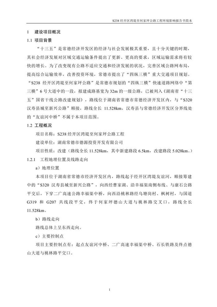 S238經(jīng)開(kāi)區(qū)灣堤至何家坪公路工程環(huán)境影響報(bào)告書簡(jiǎn)本