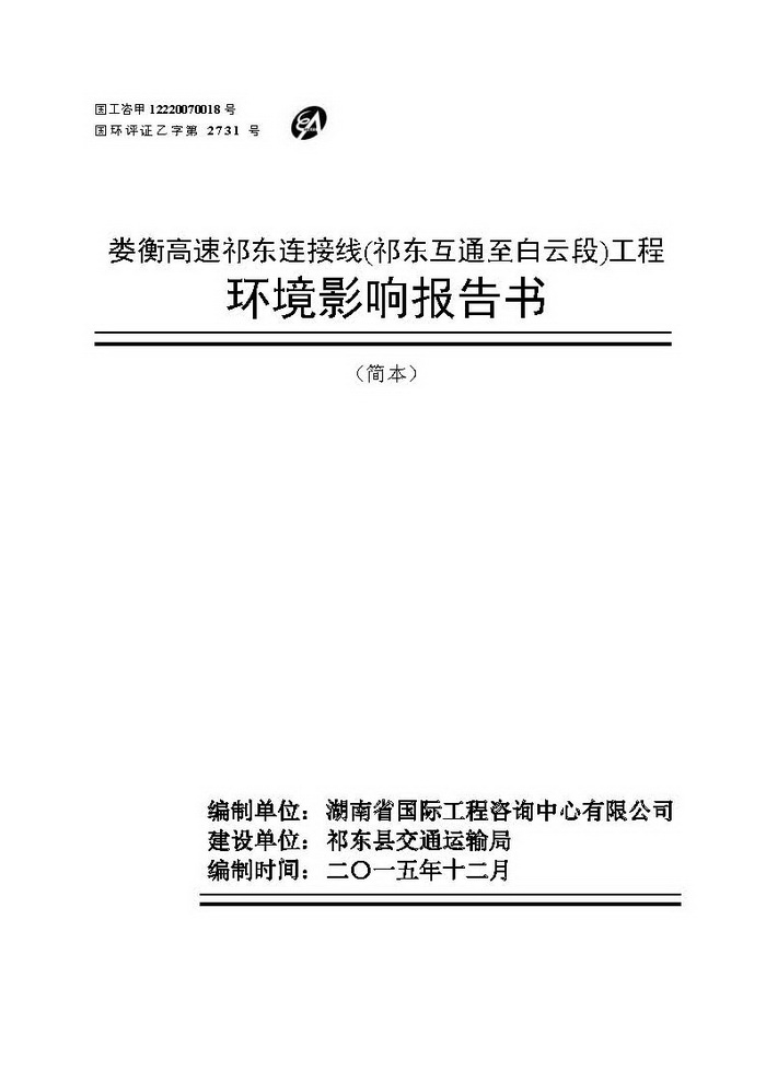 婁衡高速祁東連接線(祁東互通至白云段)工程環(huán)境影響報(bào)告書(shū)簡(jiǎn)本