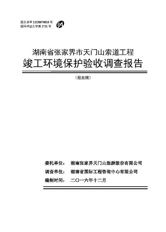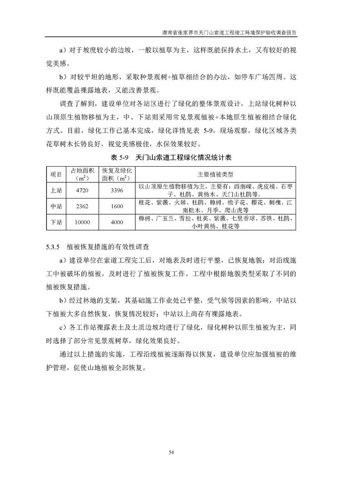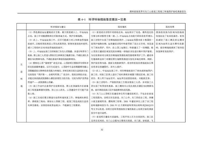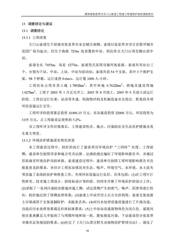 張家界天子山索道工程竣工環(huán)保驗(yàn)收調(diào)查報(bào)告