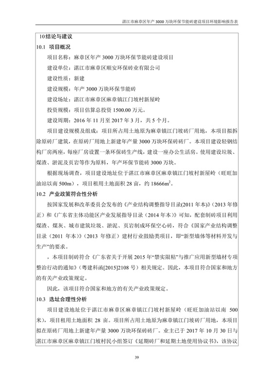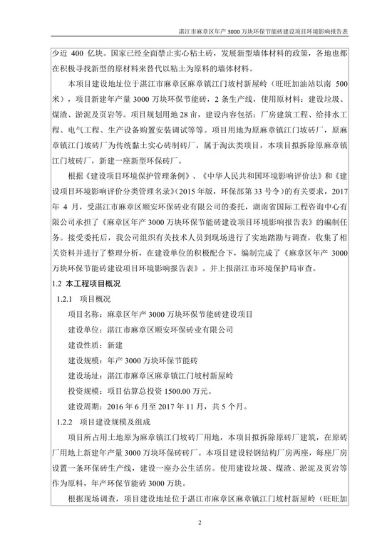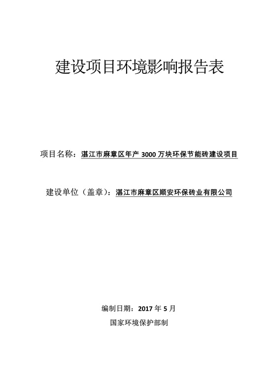 湛江市麻章區(qū)年產(chǎn)3000萬塊環(huán)保節(jié)能磚建設項目環(huán)境影響報告表公示