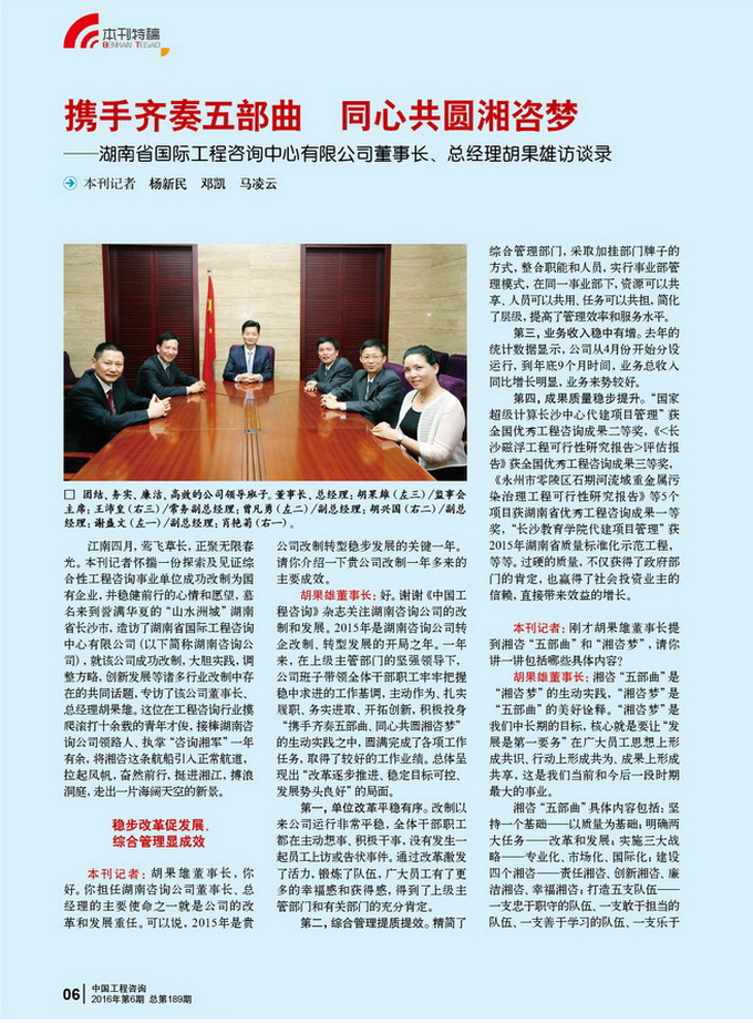 【轉(zhuǎn)載中國工程咨詢雜志】攜手齊奏五部曲 同心共圓湘咨夢