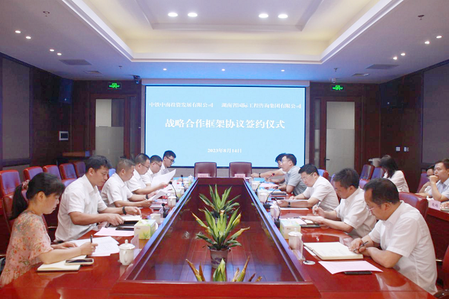 8月14日上午,湘咨集團(tuán)與中鐵中南投資發(fā)展有限公司(以下簡(jiǎn)稱中鐵中南公司)舉行戰(zhàn)略合作協(xié)議簽約儀式。湘咨集團(tuán)黨委書(shū)記、董事長(zhǎng)、總經(jīng)理詹瓊雷,中鐵中南公司總經(jīng)理陳國(guó)良出席座談并見(jiàn)證簽約,湘咨集團(tuán)董事、副總經(jīng)理伍玉勇與中鐵中南公司副總經(jīng)理黃文理分別代表雙方簽署戰(zhàn)略合作協(xié)議,雙方領(lǐng)導(dǎo)班子成員及相關(guān)部門(mén)負(fù)責(zé)人參加儀式。