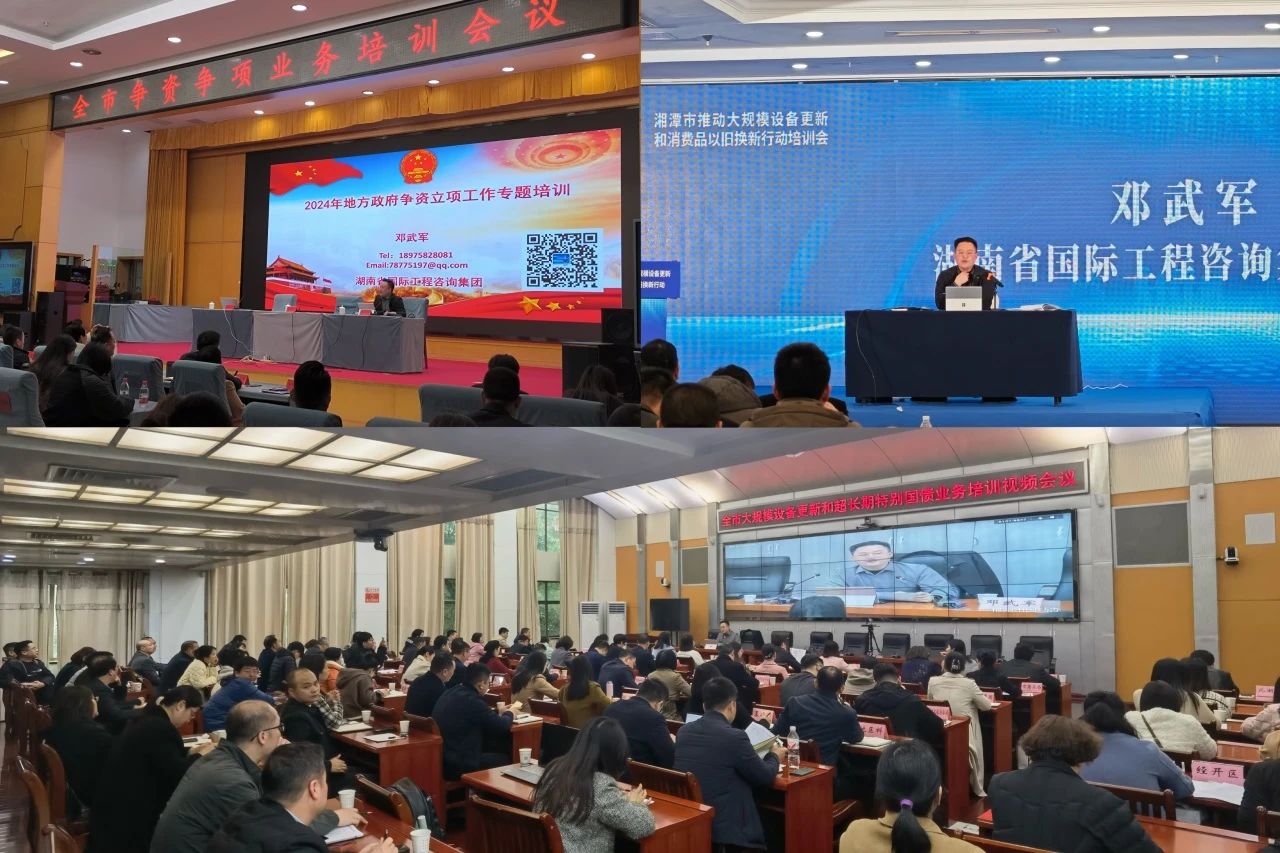 近日,應(yīng)郴州市、衡陽市、湘潭市等省內(nèi)多個(gè)市州邀請(qǐng),湘咨集團(tuán)生態(tài)規(guī)劃咨詢事業(yè)部總經(jīng)理、高級(jí)工程師鄧武軍專家赴各地解讀超長(zhǎng)期國債和大規(guī)模設(shè)備更新和以舊換新相關(guān)政策。